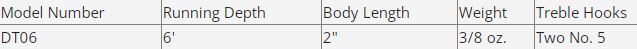 A série de crankbaits DT® (Dives-To), mergulha rapidamente até uma profundidade predefinida e permanece na “zona de ataque” por mais tempo do que qualquer outro crankbait no mercado. Feita com os sete por cento superiores de madeira balsa, esta madeira consistentemente perfeita combinada com pesos internos cuidadosamente colocados, fuselagem cônica e design de cauda fina cria a ação de crankbait definitiva, encontrada apenas na família DT. A borda de policarbonato ultrafina escava a isca rapidamente até a profundidade desejada. Nadando com uma ação lateral que apenas os crankbaits de balsa conseguem, o DT gira profundamente, mas puxa com facilidade. Perfeitamente ponderado para descansar em uma posição de “mergulho rápido” com o nariz para baixo, permitindo a descida imediata até a profundidade desejada, o DT® pode ser facilmente lançado a 150 pés. Simplificando, quanto mais longe o lançamento, mais tempo a isca permanece na zona de ataque. É a maneira mais eficaz de cobrir mais água e capturar mais peixes. O chocalho de barítono interno é ajustado para melhor desempenho sonoro. Premiere termina em todos os padrões de cores certos, finalizados com olhos holográficos 3D ou pintados. Todos vêm com ganchos de níquel preto VMC® premium. Cada isca é ajustada manualmente e testada em tanques para nadar perfeitamente assim que sai da caixa.
