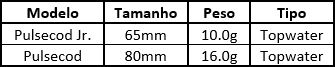O Pulsecod foi projetado para períodos pós-desova e para capturar baixos grandes em condições de pesca de alta pressão. É um novo conceito de popper, ideal para atrair grandes bass para a isca, na versão predador em seu ambiente natural. O Spring Weight Micro Vibe System, com sua oscilação e som de fervura extremamente natural, produz um som distinto durante a recuperação. O achatamento para os flancos, juntamente com a sua frente plana, favorecem a tendência de o fazer avançar direito. Além disso, um layout e design específicos foram cuidadosamente focados na atitude de flutuar obliquamente perto da superfície. A sua frente plana não deixa a água escapar pela frente, permitindo que o popper seja empurrado para a frente de forma decisiva. Além de “beijar” a superfície da água, gerando o clássico “pop” e imitando constantemente o som dos aros na fase de ataque de pequenas presas, responde rapidamente à intensidade provocada pelo trabalho da vara, mordendo o água decisivamente. Deitado em superfícies planas, na ausência de ar, ele produz uma oscilação delicada, semelhante à de um inseto batendo as asas. Lagoas, lagos, pequenas sebes delimitadas por vegetação rasteira, águas abertas, estruturas submersas: graças à sua microvibração espontânea, o Pulsecod tornar-se-á um excepcional popper, o que lhe garantirá um emocionante jogo de topwater.