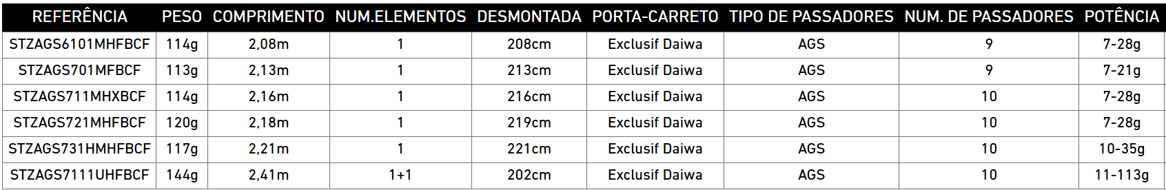 • Passadores carbono AGS exclusivos Daiwa e passadores de ponta Fuji Titanium