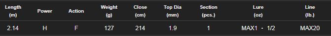 Uma cana heavy e versátil que suporta spinnerbaits pesadas de 1 / 2 oz ou mais e para pescar com sapos em zonas de vegetação rasa, mas principalmente para pescar em cobertura usando montagem Texas rig e rubber jigs de 3 / 8 oz ou mais.