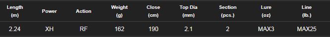 Uma cana poderosa que usa blanks que não são apenas duros,para Big Baits de 1/2 oz ou mais e Swimbaits de até MAX 3oz. Usa uma alça removível que é conveniente para transportar.