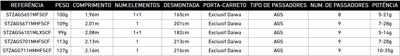 • Passadores carbono AGS exclusivos Daiwa e passadores de ponta Fuji Titanium