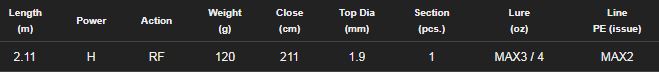 O modelo power de spinning que captura a capa pesada inexpugnável. A alça separada com ajuste curto também é excelente no manuseio. É extremamente poderoso em comparação com outras canas de finesse de power, e você pode atacar com ousadia mesmo com uma cobertura pesada que normalmente ataca.