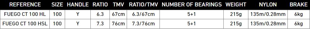 Desenvolvido nos Estados Unidos, o Fuego é um carreto de casting que vai direto ao ponto. Na verdade, os seus dois pontos fortes são a sua capacidade de lançamento e o seu poderoso travão. Equipado com discos de freio de carbono superdimensionados com tecnologia UTD, possui freio de 6 kg para deter os ataques de predadores como o lúcio ou dos bass. O sistema de freio magnético MagForce-Z regula a força do campo magnético de acordo com as fases de rotação do carreto para obter lançamentos distantes e controlados.