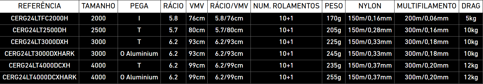 Disponível desde o tamanho 2000 para a pesca da truta ou utilizações "light" até ao 4000 para a pesca do robalo no mar.