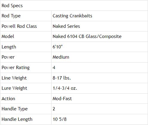 6104 CB- Who doesn’t love getting on a great crank bite? Here’s a seriously sick squarebill and lipless rod. From pinpoint casts along wooded banks to covering expansive flats, the Naked 6104 CB really cranks up the performance. Not just a great rod for these offerings, it’s ready to perform with topwaters and jerkbaits, too!